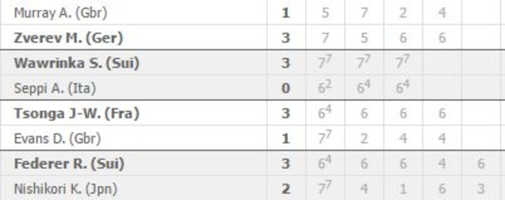 U muškoj konkurenciji najveće iznenađenje jeste podvig Miše Zvereva, koji je eliminisao najboljeg na svetu, Endija Marija sa 3:1 u setovima!