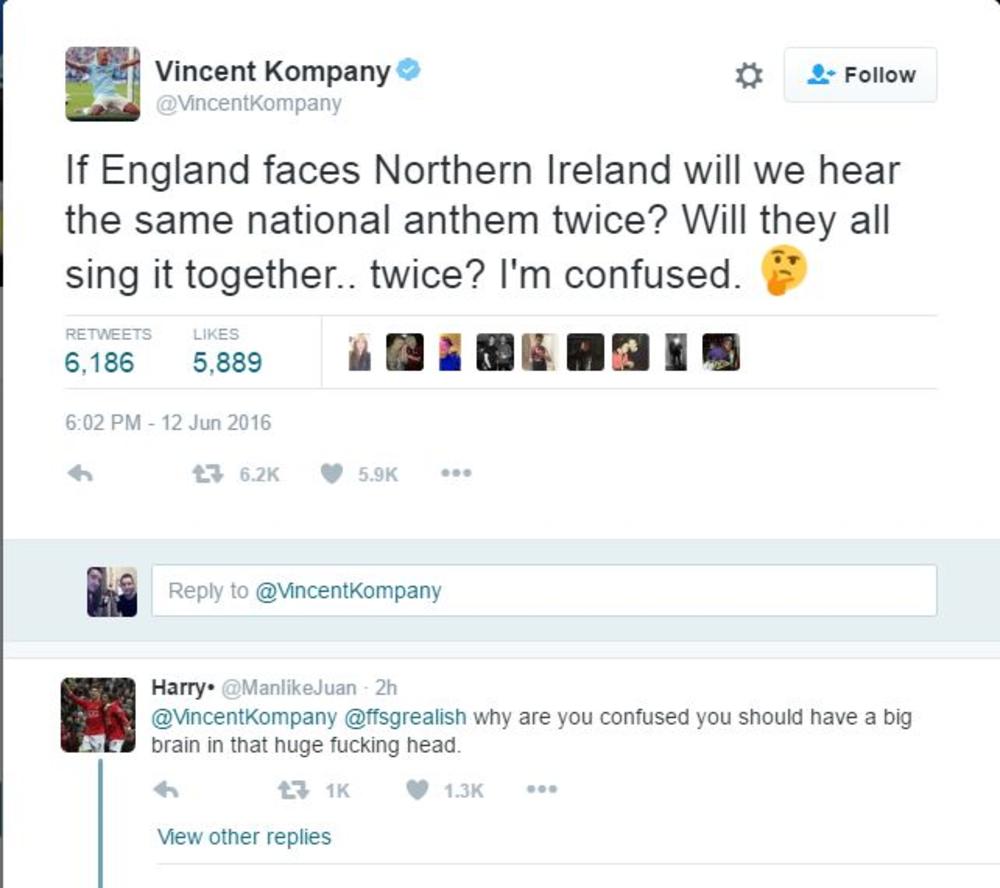 Vensan KompaniFudbalska reprezentacija BelgijeFudbalska reprezentacija EngleskeFudbalska reprezentacija Severne IrskehimnaMančester Siti