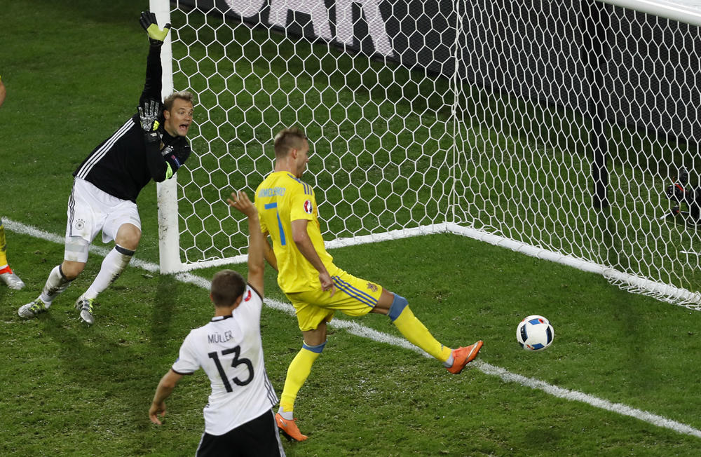 Aktuelni prvaci sveta, reprezentativci Nemačke, uspešno su startovali na ovogodišnjem prvenstvu Evrope u fudbalu pošto su na stadionu u Lilu slavili protiv autsajdera Ukrajine sa 2:0.