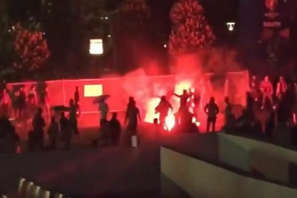 Albanski navijači su izboli nekoliko domaćih navijača, ali su im ovi oteli obeležja