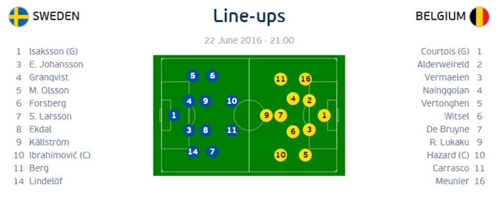 46' Utakmice su nastavljene! 45' Gotovo je prvo poluvreme, nadamo se golovima u nastavku. 42' Uzbudljivo je na oba meča. Irci su bolji od Italijana, a Šveđani igraju strpljivo i čekaju šansu protiv odlične Belgije. Gol visi u vazduhu. 35' Pre večerašnjih duela, tabela trećeplasiranih ekipa izgleda ovako.