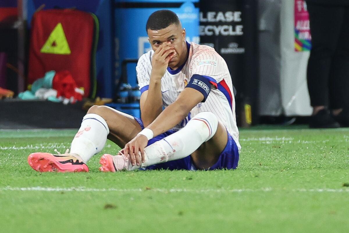 Kapiten fudbalske reprezentacije Francuske Kilijan Mbape poomio je nos tokom duela protiv Austrije na Evropskom prvenstvu u Nemačkoj.