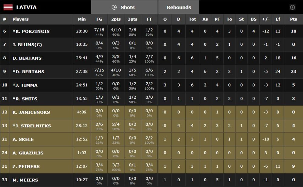'37 - Porzingis za 3! Letonija vodi! Serija 10:0! (73:75)