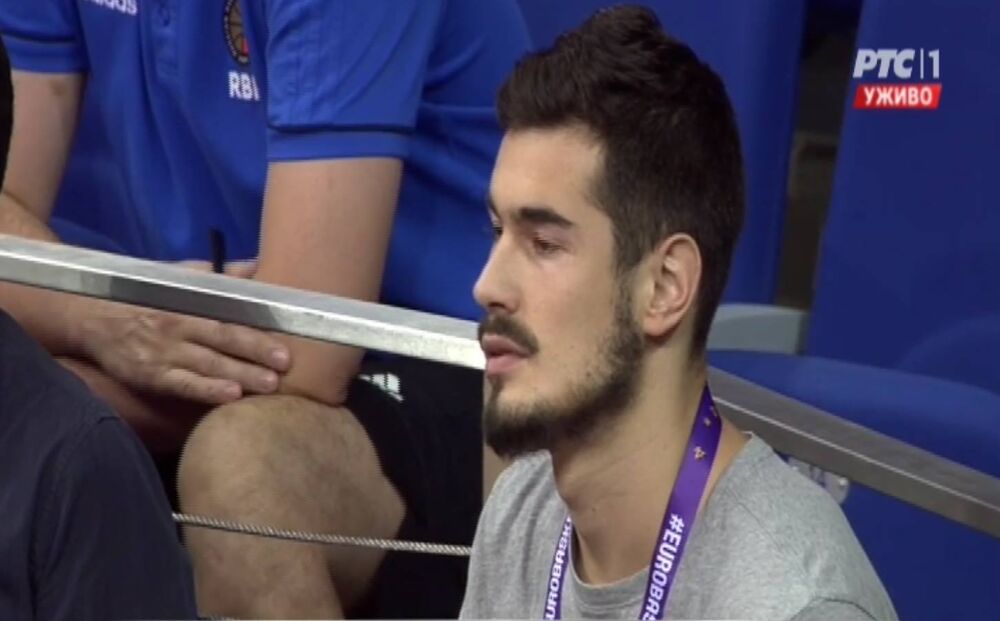 Košarkaš Fenerbahčea iz porvih redova posmatra meč i daje podršku svojim drugovima iz nacionalnog tima.