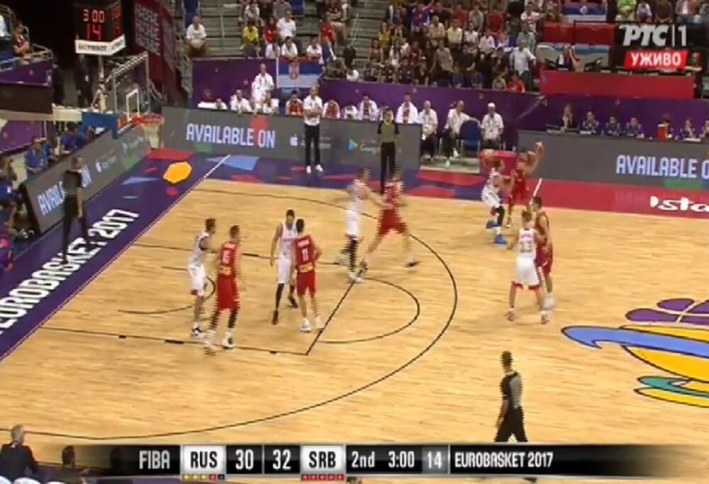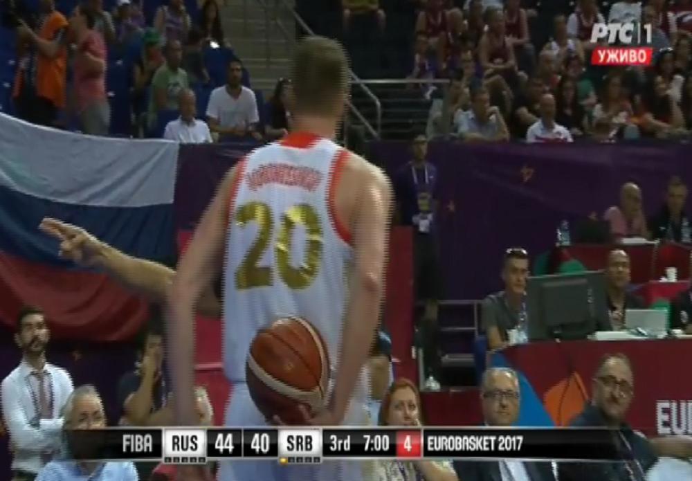 13. minut - DRAGAN MILOSAVLJEVIĆ! Trojka u poslednjoj sekundi napada za prekid serije Rusa.