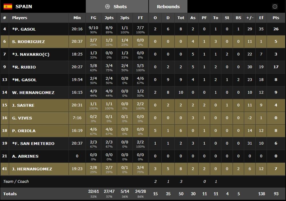 Posle dominatne partije protiv Crnogoraca, izabranici Serđa Skariola su rezultatom 93:56 pregazili i Češku, a Najviše zahvaljujući Pau Gasolu koji je postigao 26 poena uz osam skokova.