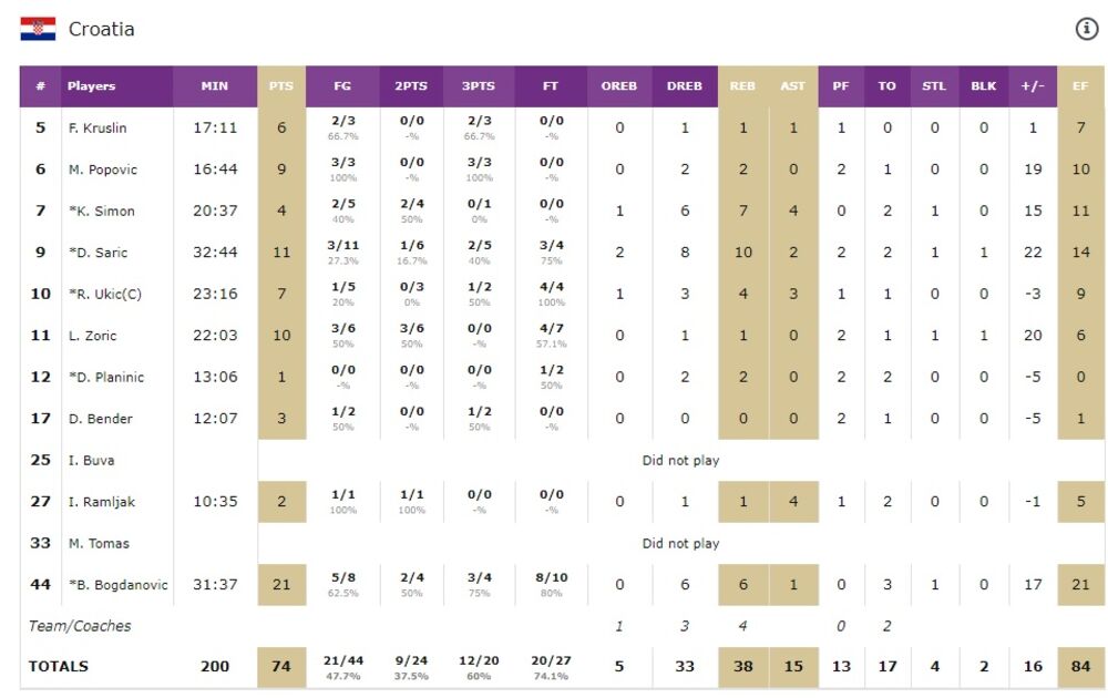 Bojan Bogdanović je postigao 21 poen uz šut 3/4 za tri poena, a Šarić je dodao 11, dok je Žorić ubacio 10.