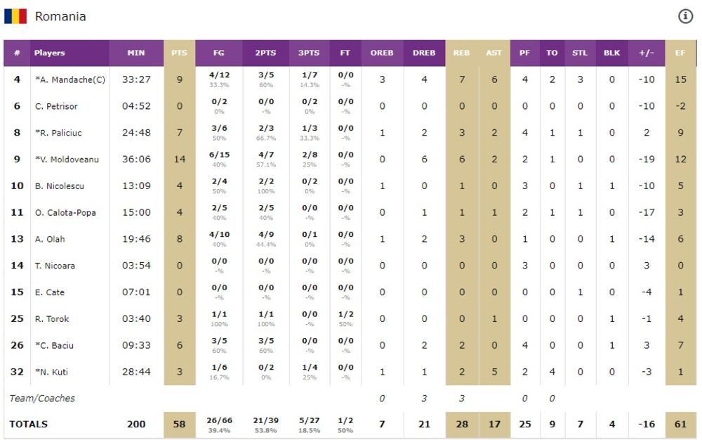 Kod Rumuna je najbolji bio Moldovanu sa 14 poena i jedini je bio dvocifren.