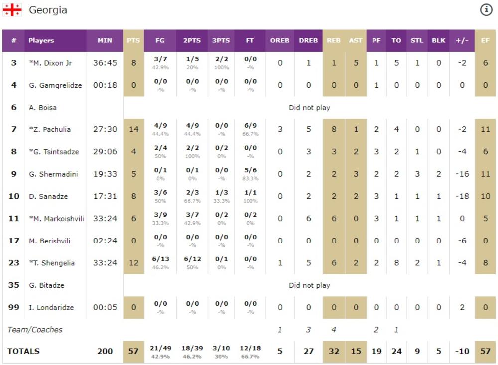 Sa druge strane Zaza Pačulija sa 14 poena i Toko Šengelia sa 12 poena...