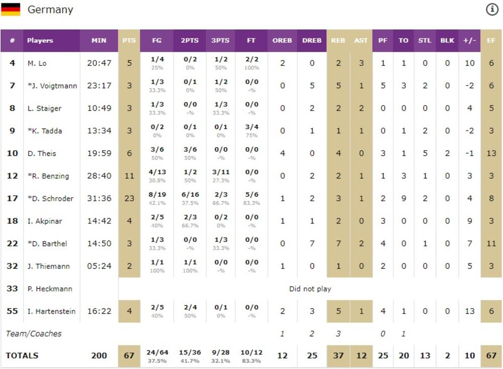 Gruzija - Nemačka 57:67