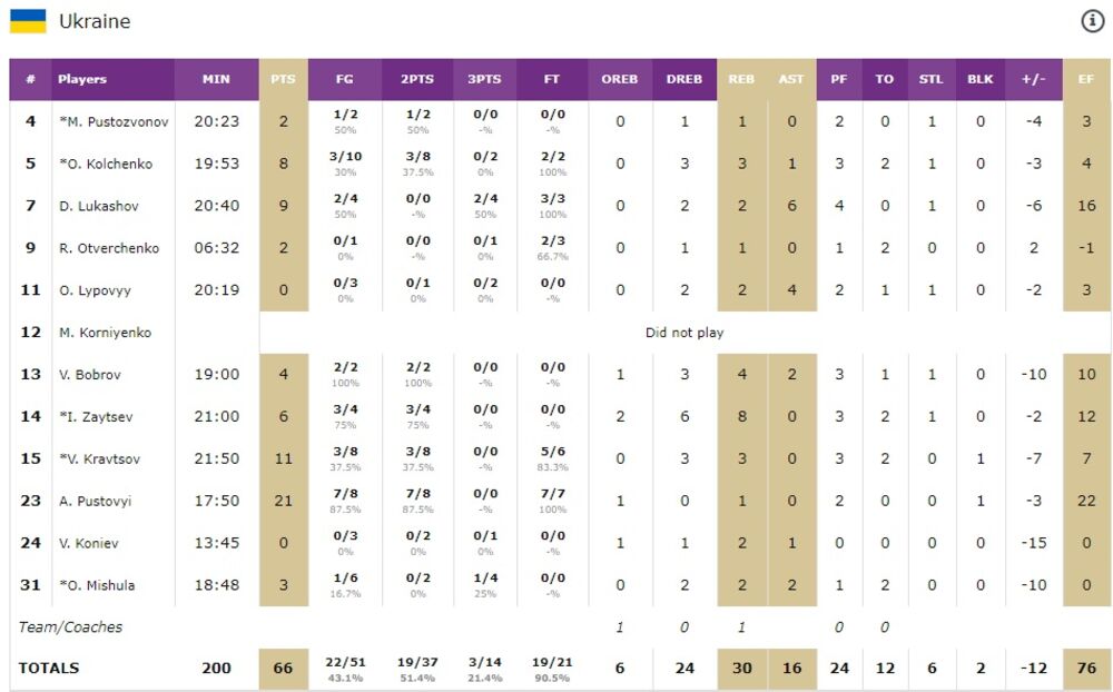 Kod Ukrajinaca istakli su se Pustovij sa 21 poenom i Kravcov koji je dodao 11.
