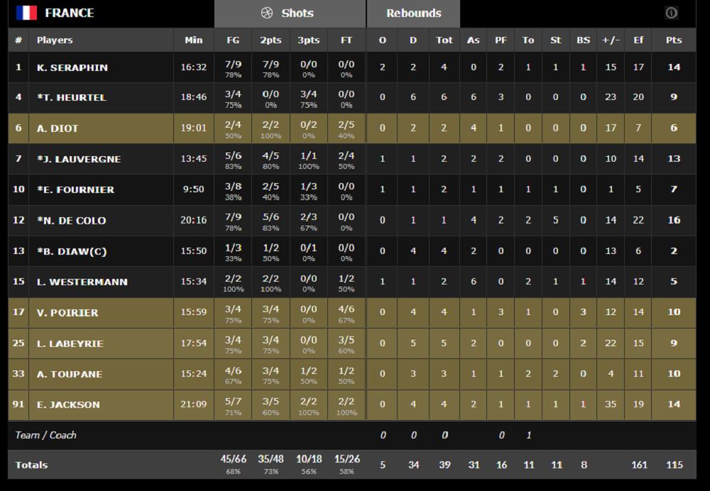 Kod Francuza čak šest igrača su bili dvocifreni, a posebno se izdvojio Nando de Kolo sa 16 poena.