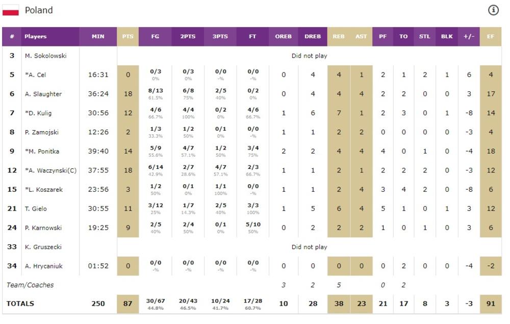 Najefikasniji kod domaćina pored Markanena bio je Peteri Koponen sa 20 datih poena, dok su kod Poljaka najbolji bili Sloter i Vačinski sa po 18 datih poena.