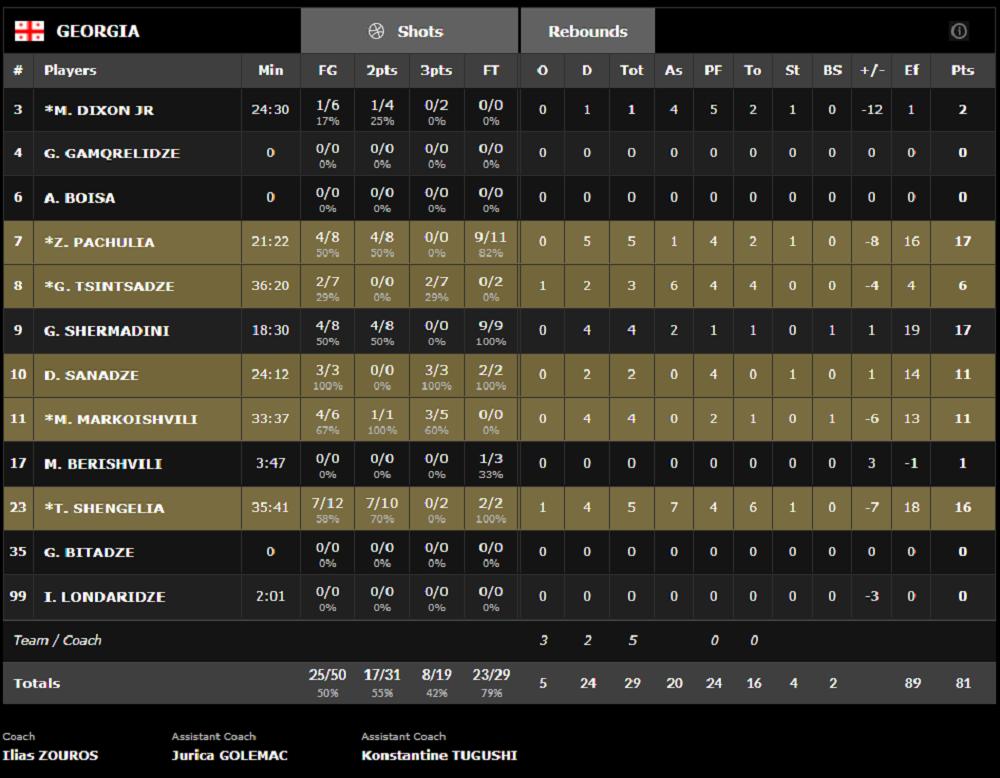 Kod Gruzije bolji od ostalih bili su Pačulia i Šermandini sa po 17 poena, dok je 16 dodao Šengaila.