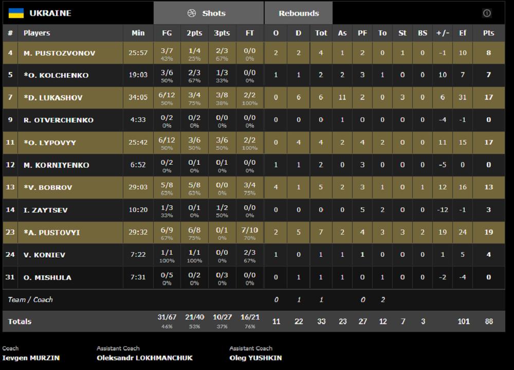Najbolji kod pobednika bio je Pustovij sa 19 poena, a po 17 dodali su Lukašov i Lipovij.