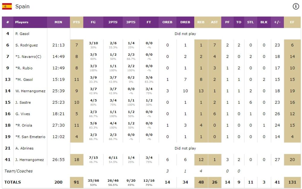 Pau Gasol je odmarao, ali su u njegovo odsustvu briljirali Huan Ernangomez sa dabl-dabl učinkom od 18 poena i 12 skokvoa. Mark Gasol i Pjer Oriola ubacili su po 11 poena, sa 10 je pobedi doprineo Đoan Sastre.