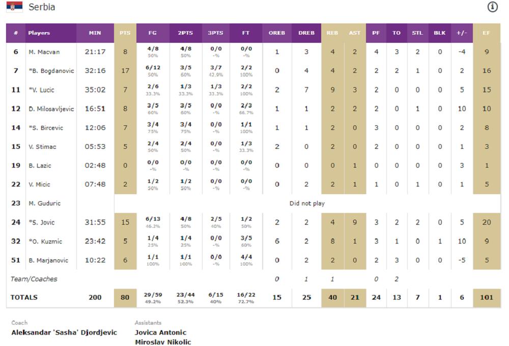 Ipak, Srbija je bila koncentrisana u završnici i nije ispustila pobedu na ovoj utakmici, ma kraju je bilo 80:74.