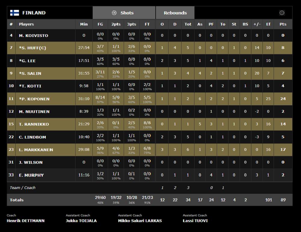 Finsku su ponovo predvodili Koponen sa 24 i Markanen sa 17 poena.
