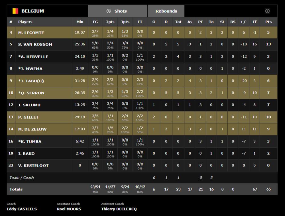 U timu Belgije jedini dvocifreni bili su Van Rosom sa 13 i Žile sa 10 poena.