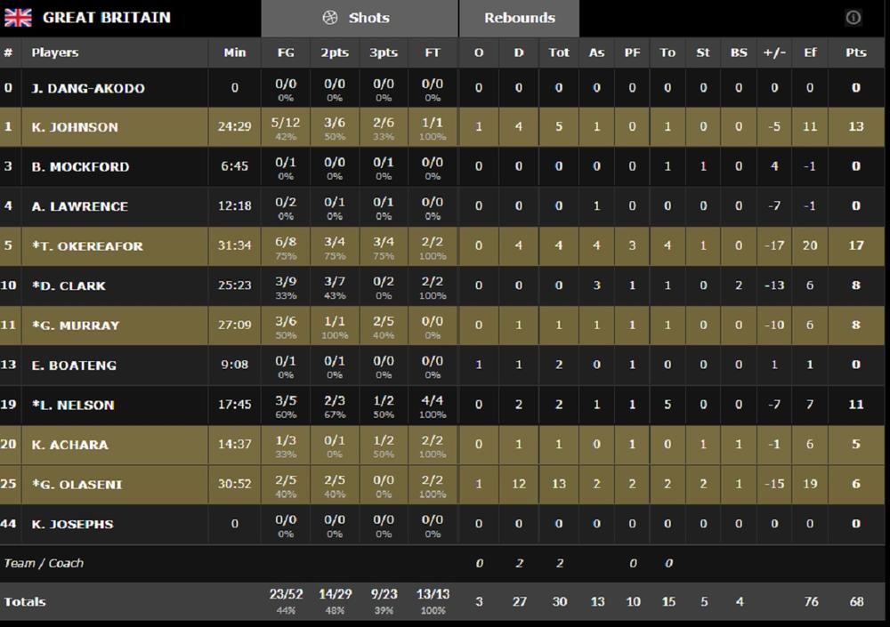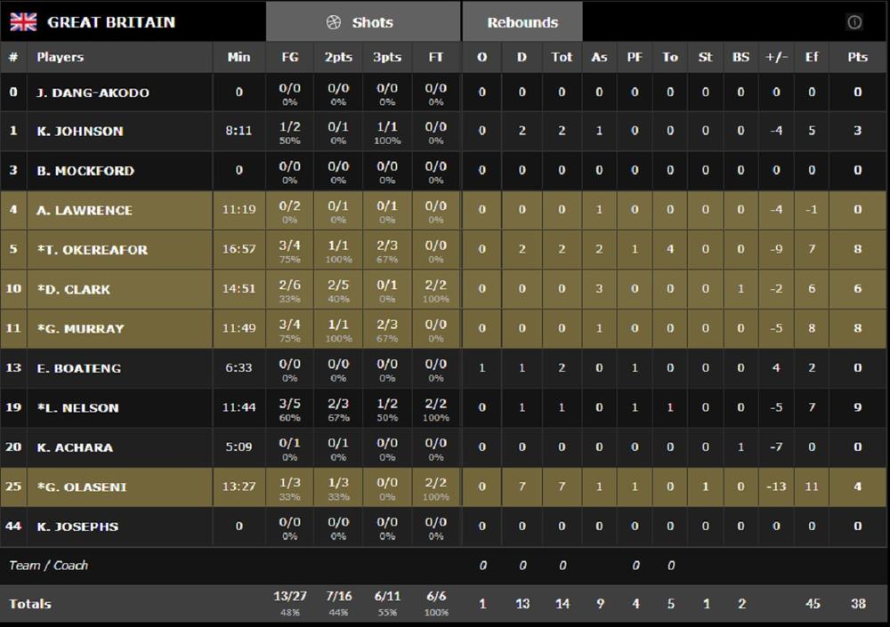 SASTAV VELIKE BRITANIJE: Akodo, Džonson, Mokford, Lorens, Okerefor, Klark, Marej, Boateng, Nelson, Ačara, Olaseni, Džosefs
