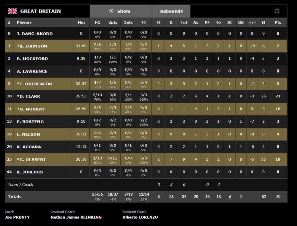 U timu Velike Britanije najbolji je bio Klark sa 21 poenom, dok je Olaseni dodao 19.
