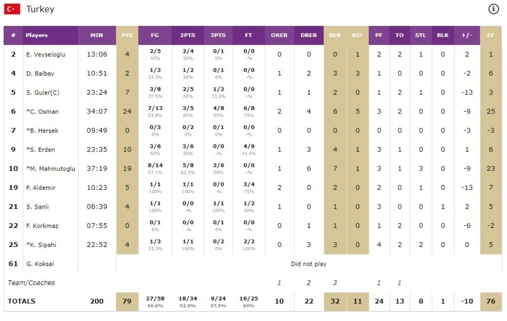 Za poraženi sastav, Čedi Osman i Mahmutoglu su dominirali sa 24. odnosno 19 poena, ali ostatak ekipe nije umeo da ih isprati na pravi način.