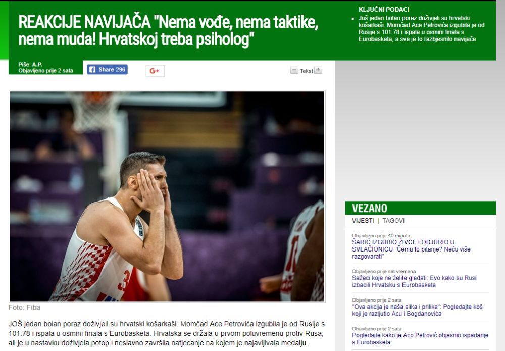 Nimalo hrvatski mediji ne štede svoje košarkaše, niti selektora, posle još jednog debakla koji su doživeli na velikim takmičenjima.