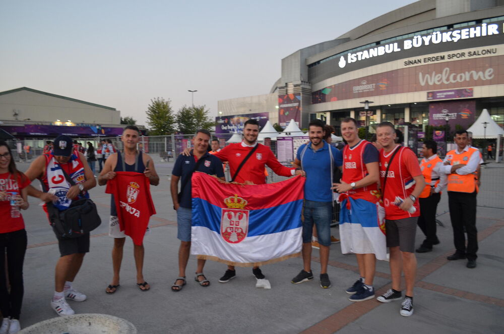 Par sati ispred dvorane Sinan Erdem, pre polufinalnog meča između Srbije i Rusije, zatekli smo grupu od nekoliko naših navijača.