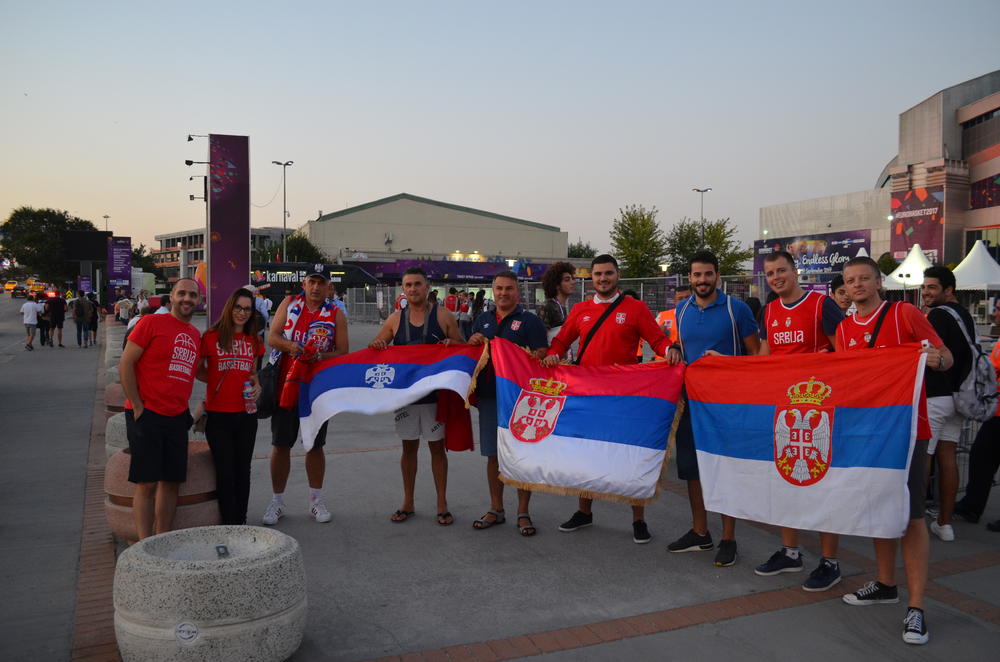 Polufinale je Evropskog prvenstva, pa je i broj naših navijača mnogo veći nego prethodnih dana. Ima ih iz Beograda, Novog Sada, Bazela...