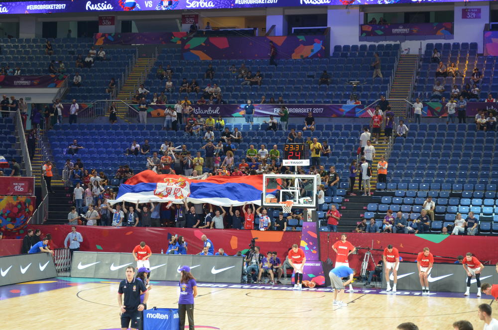 20:08 - "Ja te volim Srbijo" ori se pred početak meča u hali u Istanbulu