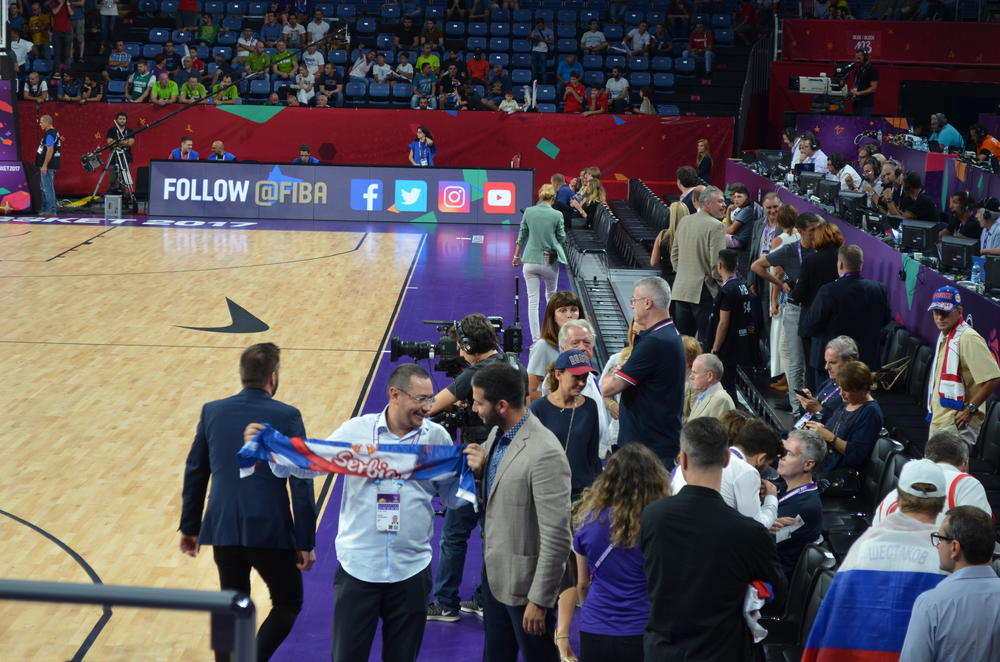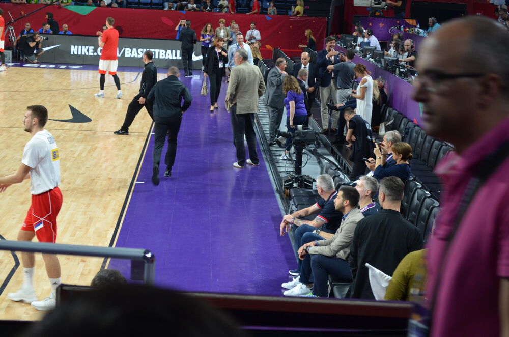 32. minut - Trojkom Gudurić odgovara na seriju Rusa. Utakmica ulazi u napetu fazu, pa je predsednik KSS, Predrag Saša Danilović, izašao iz dvorane verovatno malo da se smiri, pošto ga nema na svom mestu. Srbija - Rusija 69:62.