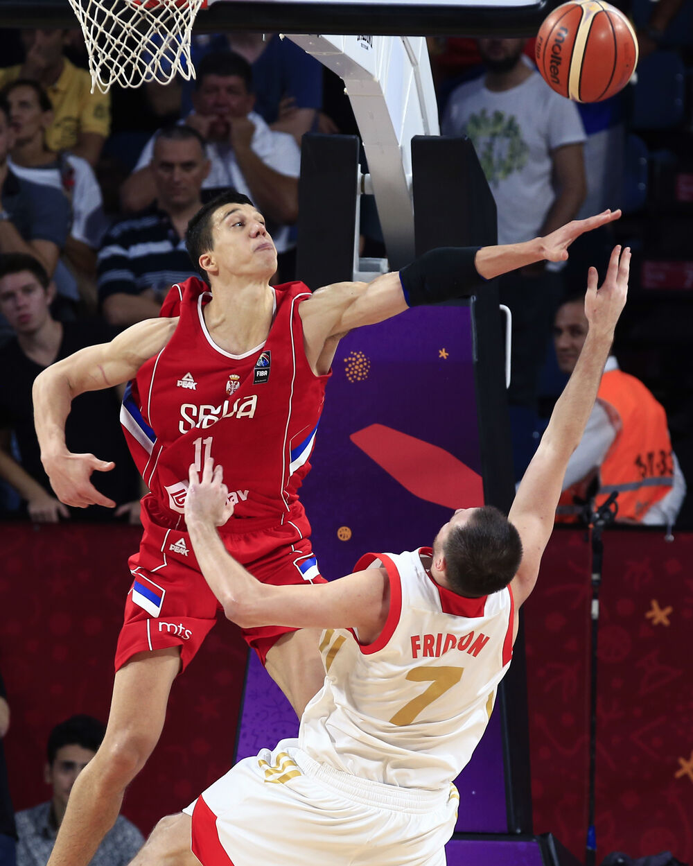 25. minut - Najbolja akcija na meču, alej-up u izvođenju Jovića i Lučića, Srbija - Rusija 57:41.