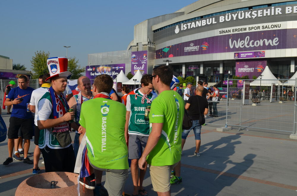 Ovaj odnos navijača zatekli smo i ispred dvorane Sinan Erdem, u kojoj se za nešto više od par sati igra veliko finale Eurobasketa između Srbije i Slovenije.
