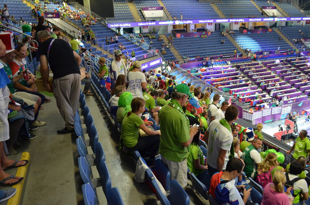 19.20 - Slovenački navijači već polako ispunjavaju svoja mesta u dvorani "Sinan Erdem".
