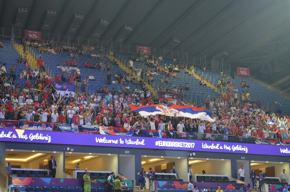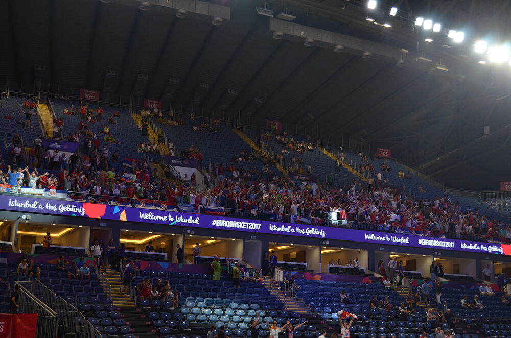 19.00 - Nema sumnje da će Slovenci imati jaču podršku sa tribina. Još tokom dana se ogroman broj njihovih navijača skupljao na ulicama Istanbula i pevao, ali su im u tome odgovarali i srpski navijači.