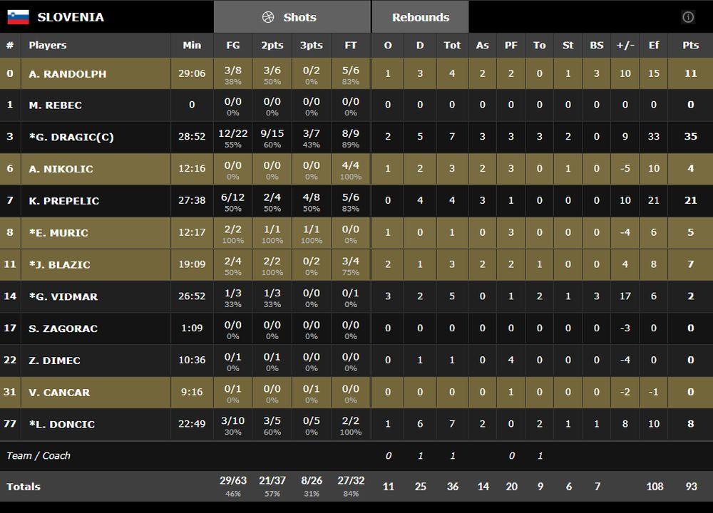 Goran Dragić je meč završio sa 35 poena i zasluženo mu je pripala MVP nagrada za igrača turnira, a pratio ga je pominjani Prepelić sa 21, uz sjajnu rolu i u odbrani i u napadu Entoni Rendolf sa 11 poena, 3 blokade i 4 skoka.