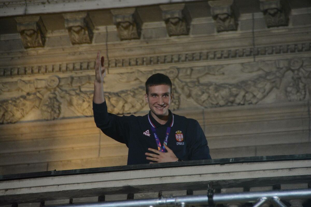 Reprezentativci Srbije popeli su se danas na 'balkon' a pozdravilo ih je dvadesetak hiljada ljudi.