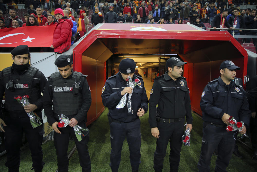 Pre susreta 14. kola turske Superlige fudbaleri oba tima su se pozdravili s policajcima koji su obezbeđivali utakmicu.