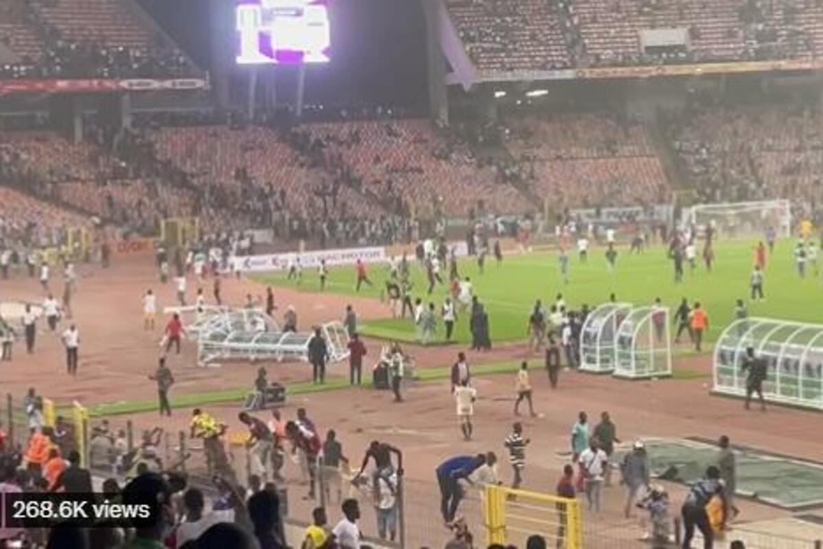 Po završetku meča na stadionu u Abudži nastao je totalni haos. Nekoliko hiljada navijača istrčalo je na teren i počelo da uništava sve pred sobom.
