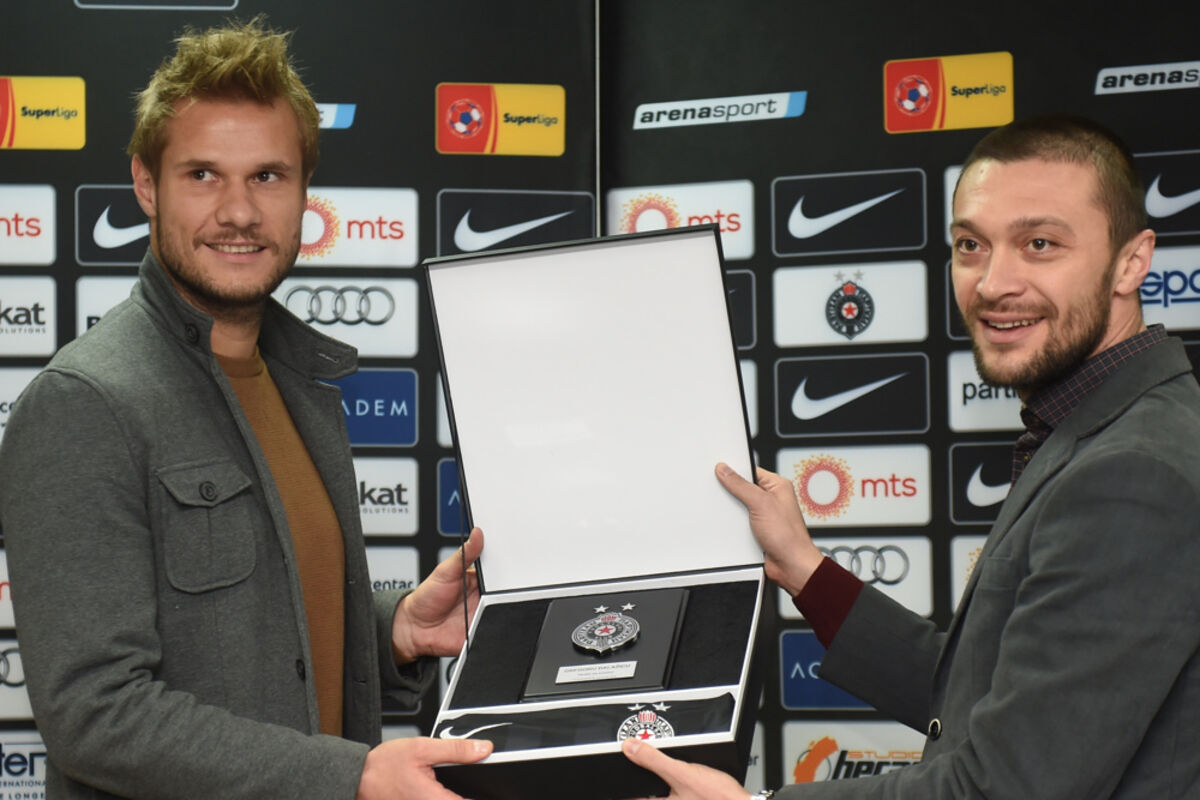 Sportski direktor Partizana Ivica Iliev mu je na rastanku predao klupsku plaketu, kao i dres koji su potpisali svi njegovi saigrači iz ove sezone.
