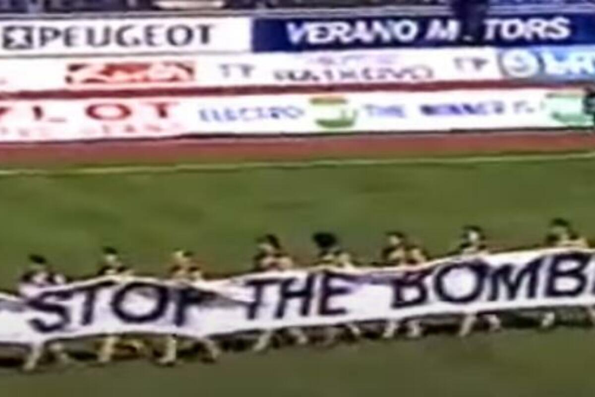 Prvotimci oba tima su pred 15.000 navijača, dok je na snazi bila vazdušna opasnost, istrčali sa simbolom mete na dresovima uz transparent sa porukom: "NATO, prekini rat, prekini bombardovanje".