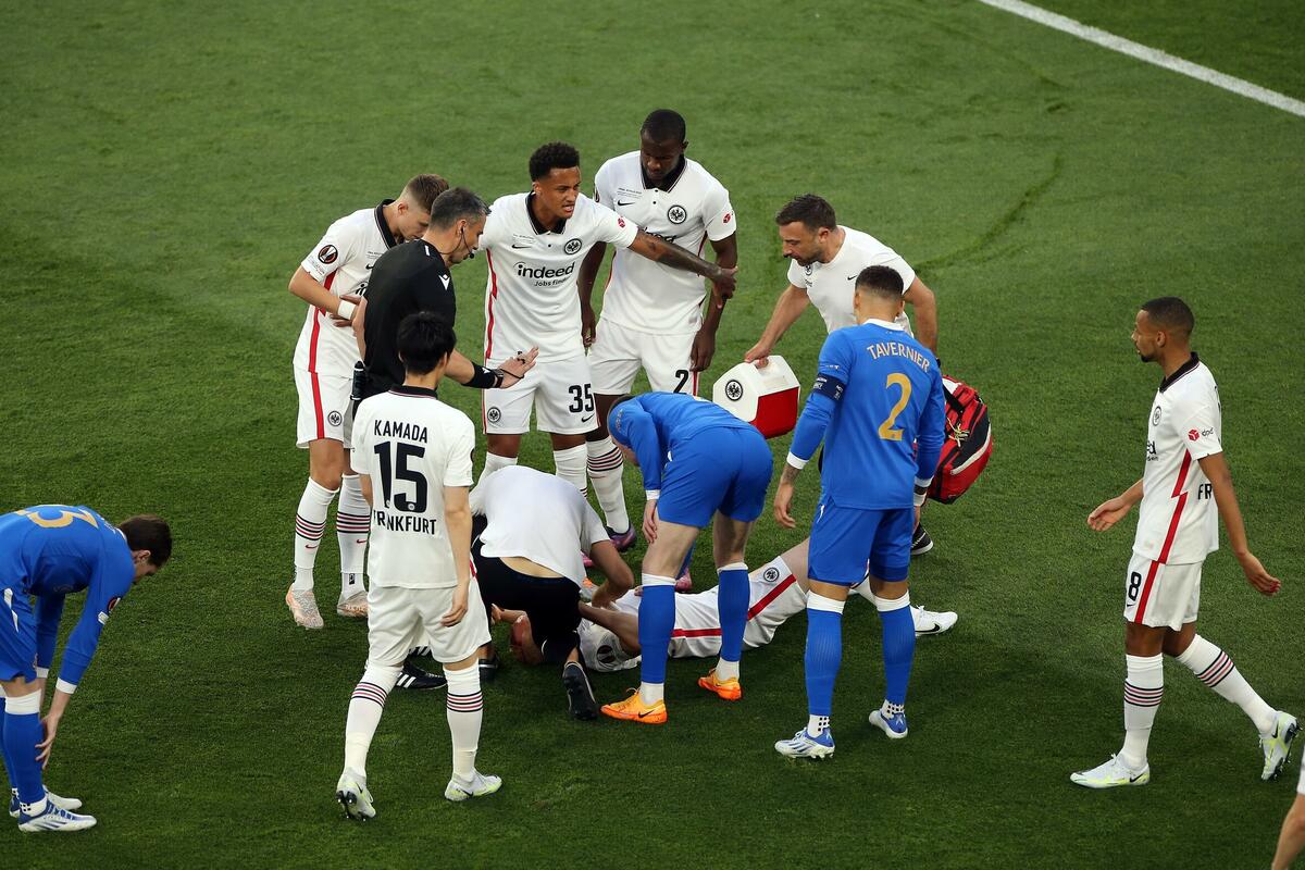 Već u šestom minutu, fudbaleru Ajntrahta Sebastijanu Rodeu je ukazana medicinska pomoć.