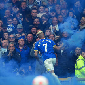 Dovoljno da se na terenu nađe masa ljudi po običaju koji se vratio na Ostrvo. Hiljade navijača Evertona su utrčale na teren i počele da slave opstanak, ali kao posle plej-of duela Notingem Foresta i Šefild junajteda za vikend, jedan navijač je napao člana protivničkog kluba.
