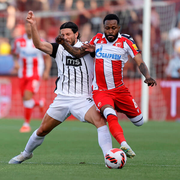 11. minut - zapretila je i Zvezda. Ohi se domogao lopte između Miletića i Vujačića, ali se Stevanović na vreme bacio i zgrabio loptu.