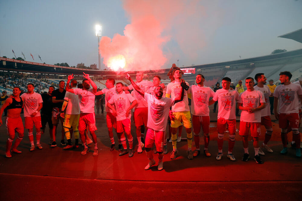 Crveno-beli su tako odbranili trofej osvojen prošle godine, ali i duplu krunu jer su u nedelju po peti put uzastopno osvojili Superligu Srbije.