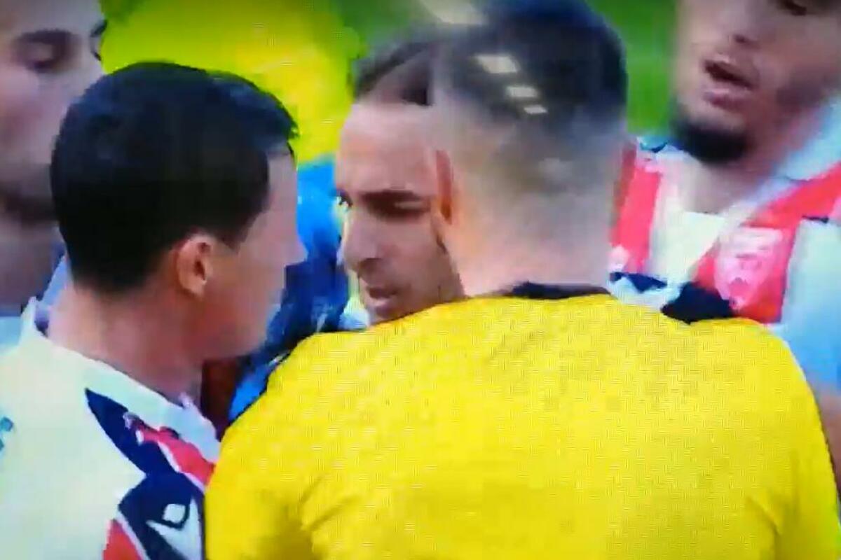 U trenutku kada je Milan Borjan prišao kako bi odvukao Srnića, podigao je visoko lakat pa je delovalo da je kapiten Partizana dobio po nosu.