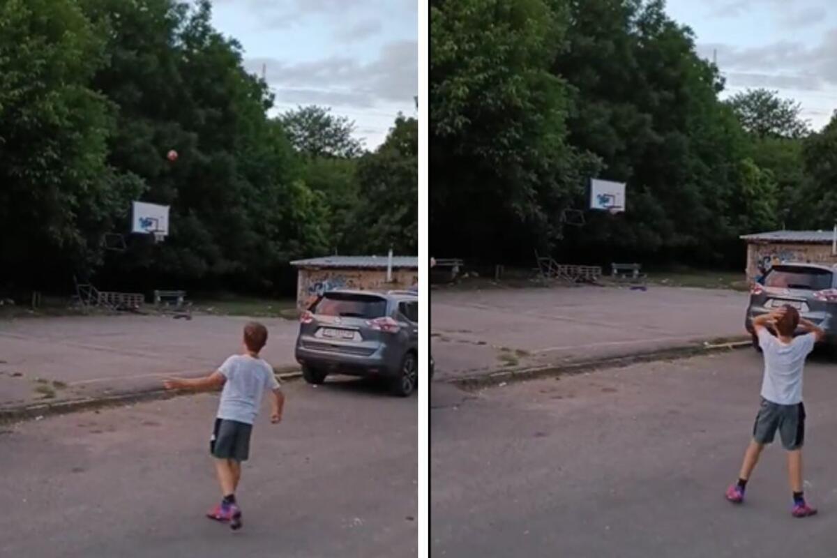 Dečak koji je udarcem sa distance loptu probacio kroz obruč sa velike distance igra fudbal u mlađim kategorijama Partizana.