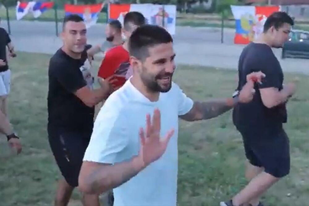 Bilo je tu "i starog i mladog", upaljeno je na desetine baklji (lokalni navijači su na jedvite jade "naterali" proslavljenog golgetera da dve uzme, na kratko), a onda je usledio odlazak do murala, koji je zadivio napadača srpske reprezentacije, čiji je potpis na kraju dodatno ukrasio ovo remek-delo.