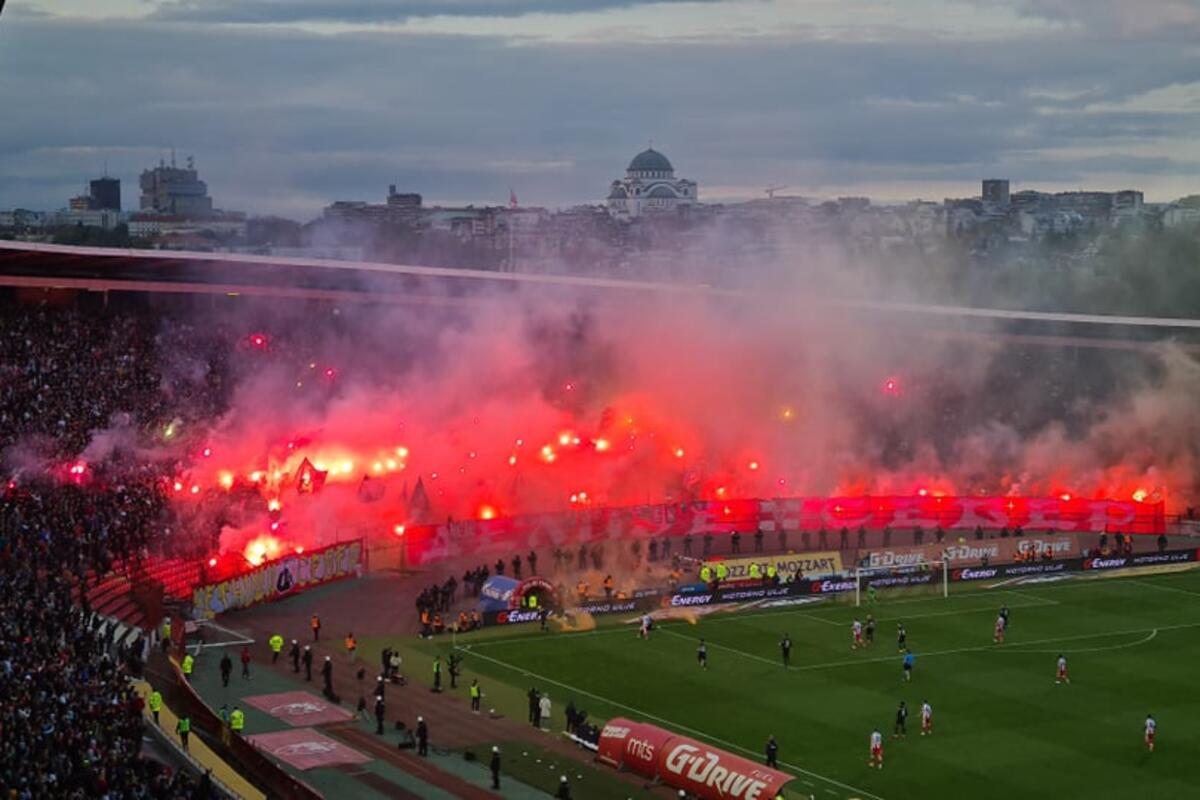 Kako bi animirali što više ljudi da u nedelju budu na Marakani, pristalice crveno-belih su bakljama napravili strelice kojima su obasjali severnu tribinu, a sve to snimljeno je dronom iz vazduha.