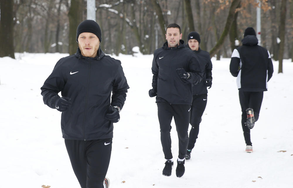 Prepodnevni trening igrači Partizana su odradili u Košutnjaku na snegom pokrivenoj trim stazi.